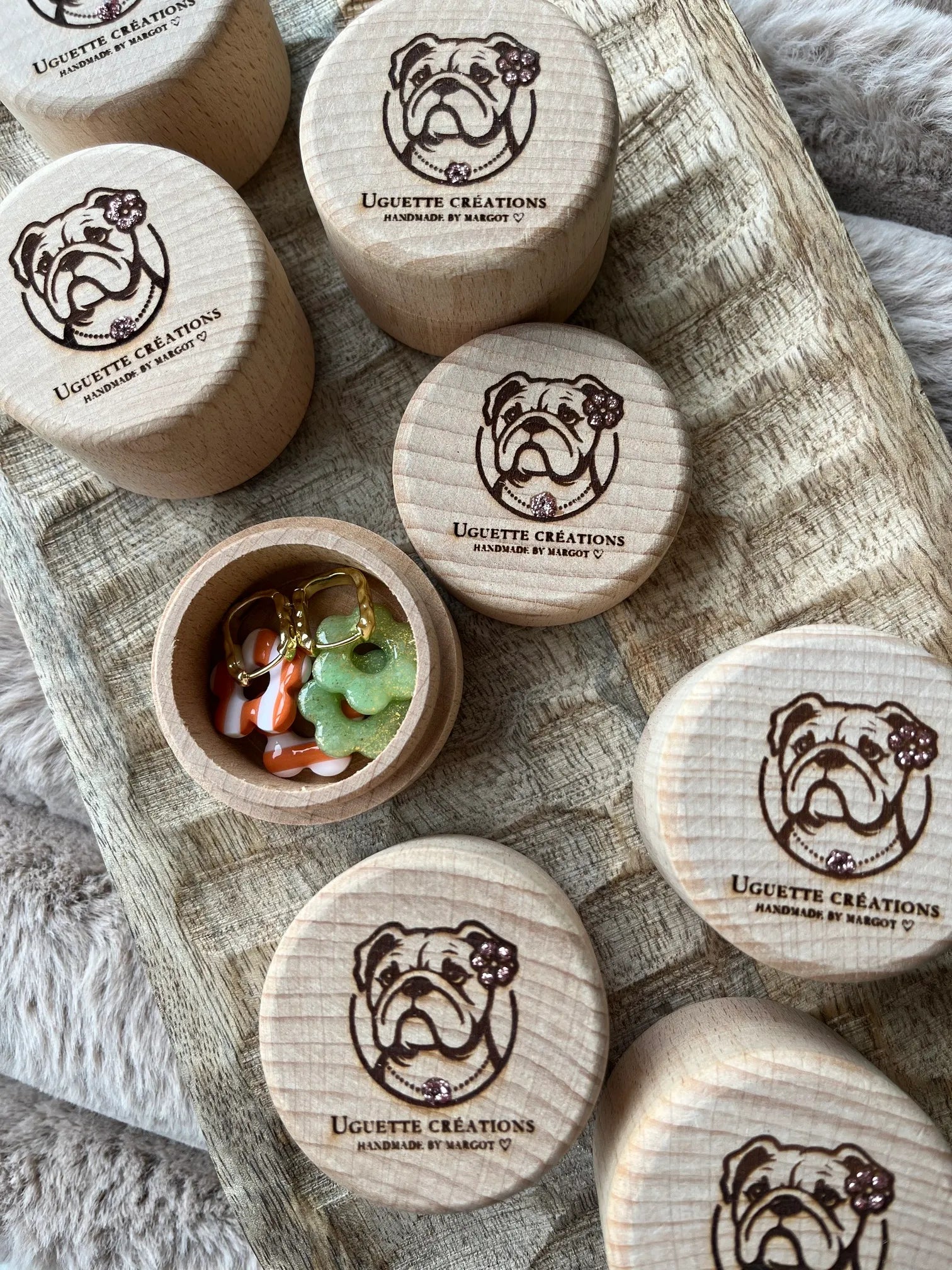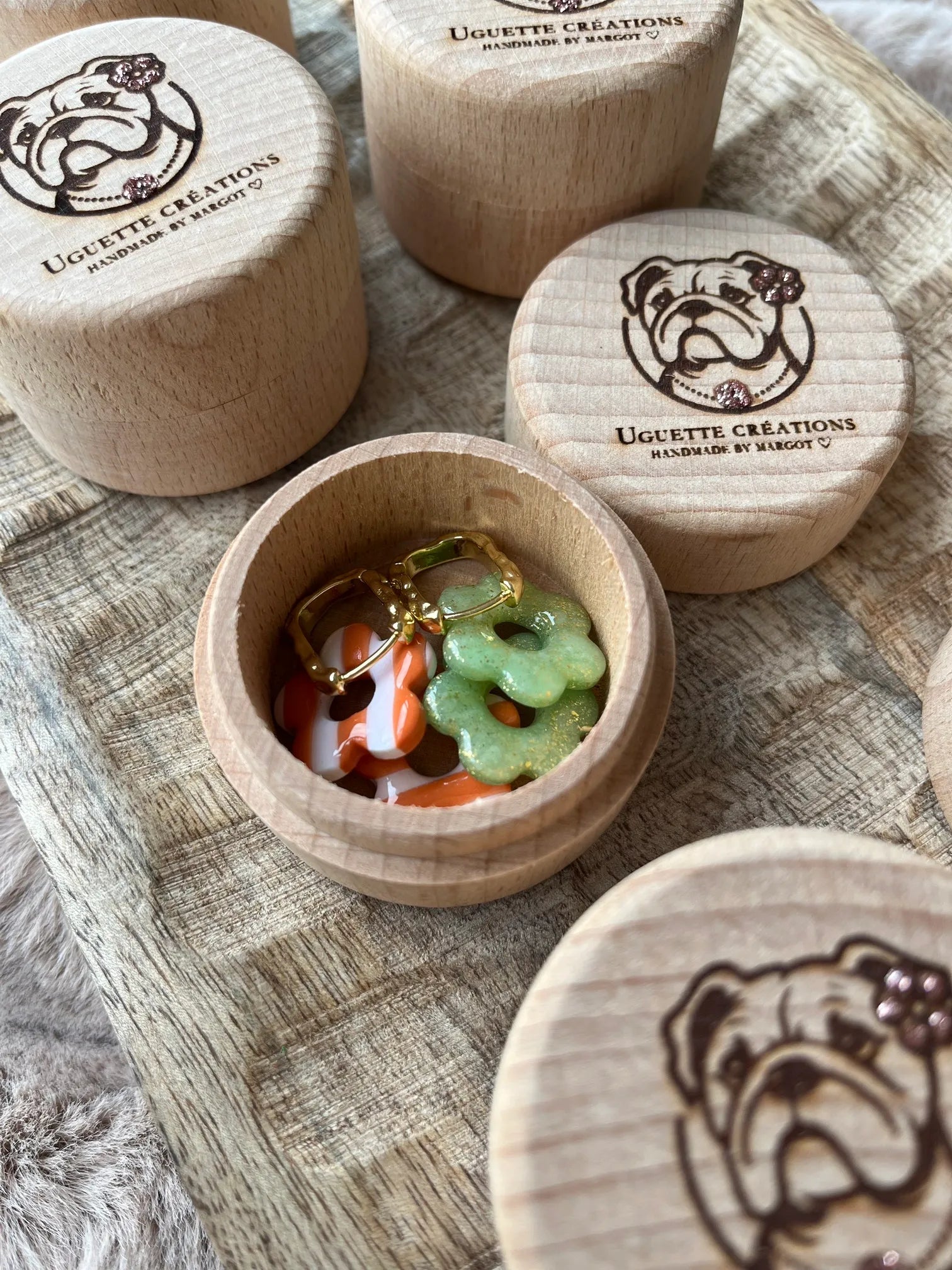 Petite boîte en bois, gravé par la Petite Typo à Biscarrosse et sa touche de paillettes Uguette créations; idéale pour ranger vos créoles et vos pampilles.