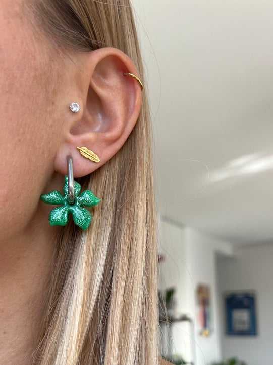 Boucles d’oreilles interchangeables; une paire de créoles et un choix infini de pampilles.