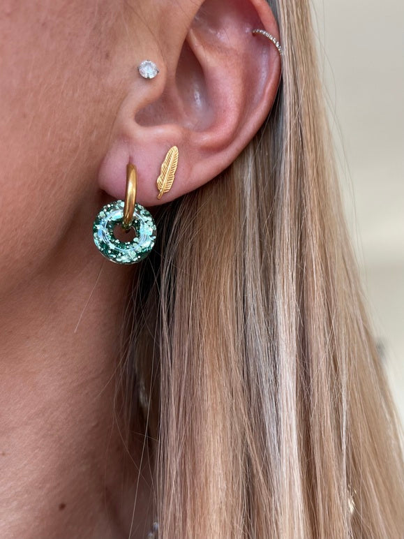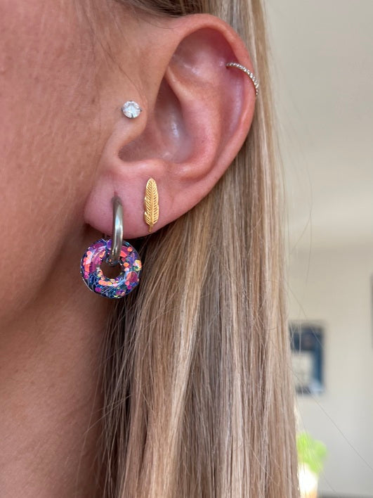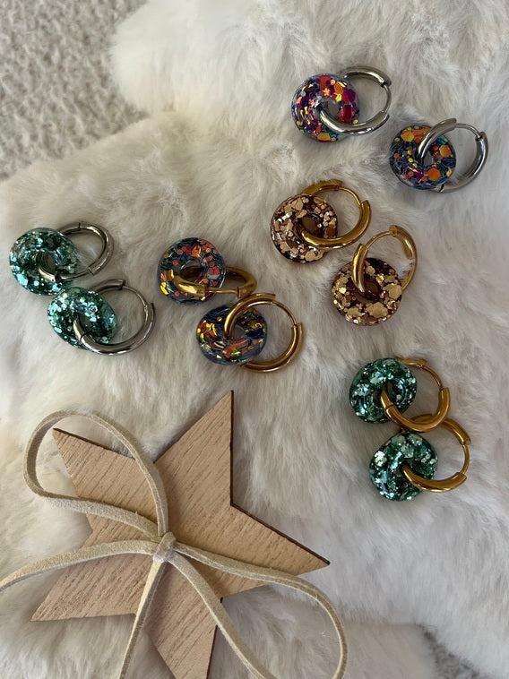 Pampilles donuts, 15mm - 100% fait main en résine et paillettes - Pièces uniques et très légères (Créoles + pampilles 4g / Paire de pampilles 2g)