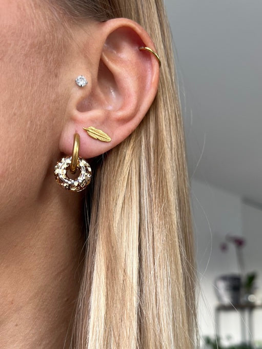 Boucles d’oreilles interchangeables; une paire de créoles et un choix infini de pampilles.