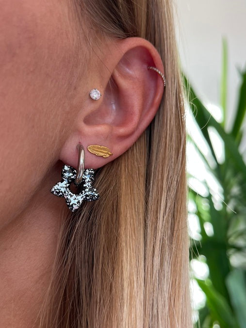 Boucles d’oreilles interchangeables; une paire de créoles et un choix infini de pampilles.