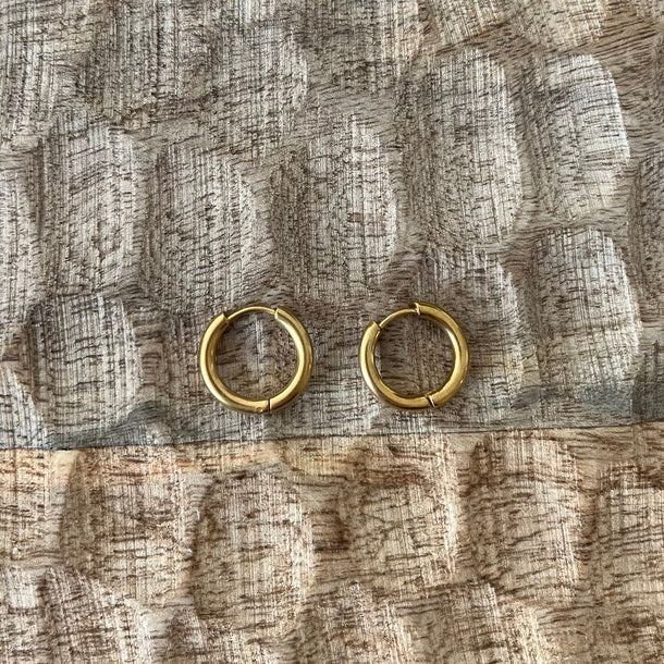 Créoles assorties aux pampilles grands carrés : Petites rondes dorées -14mm - Acier inoxydable - (Non vendues séparément)