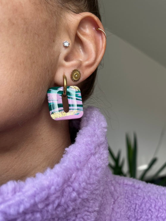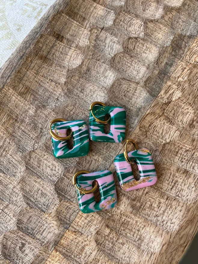 Pampilles grands carrés - 25mm - 100% fait main en argile polymère - Pièces uniques et très légères (Créoles + pampilles - 6g / Paire de pampilles 3g)