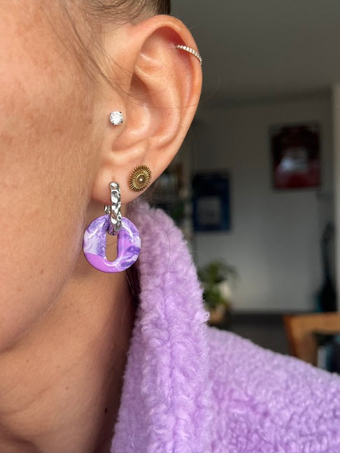 Boucles d’oreilles interchangeables; une paire de créoles et un choix infini de pampilles.