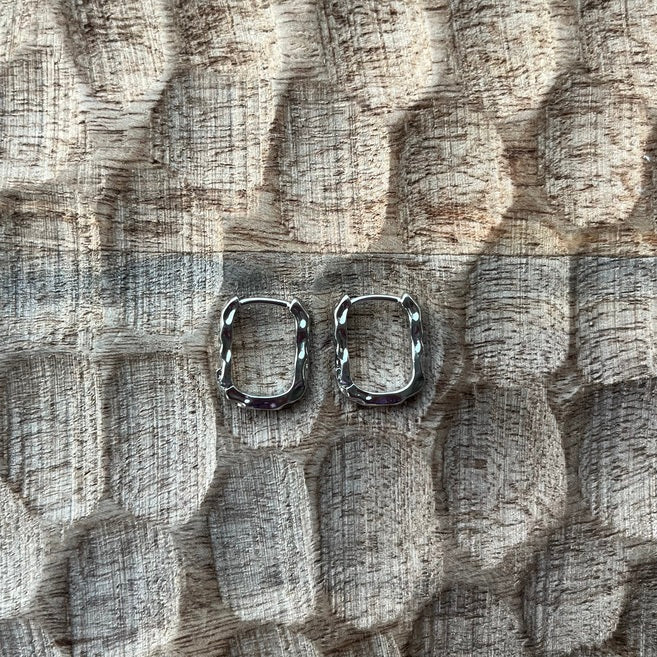 Créoles assorties aux pampilles petits ronds : Rectangulaires martelées dorées ou argentées - H 16mm / L 12mm - Cuivre - (Non vendues séparément)