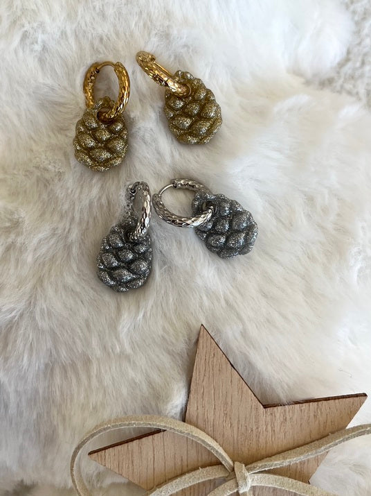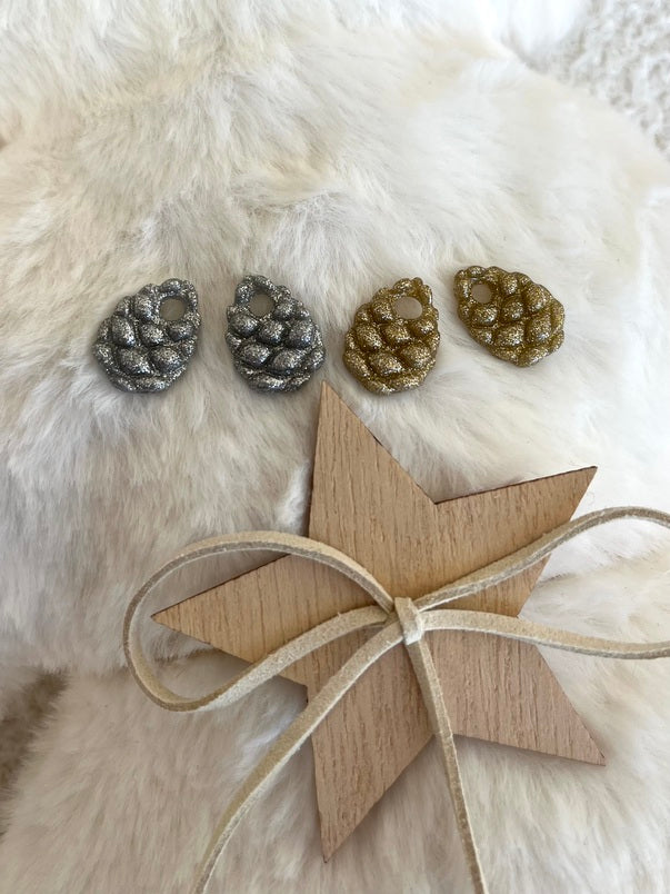 Pampilles pommes de pin, 17x12mm - 100% fait main en argile polymère - Pièces uniques et très légères (Créoles + pampilles 4g / Paire de pampilles 1g)