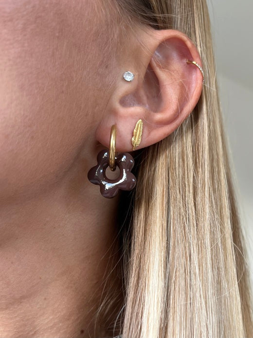 Boucles d’oreilles interchangeables; une paire de créoles et un choix infini de pampilles.