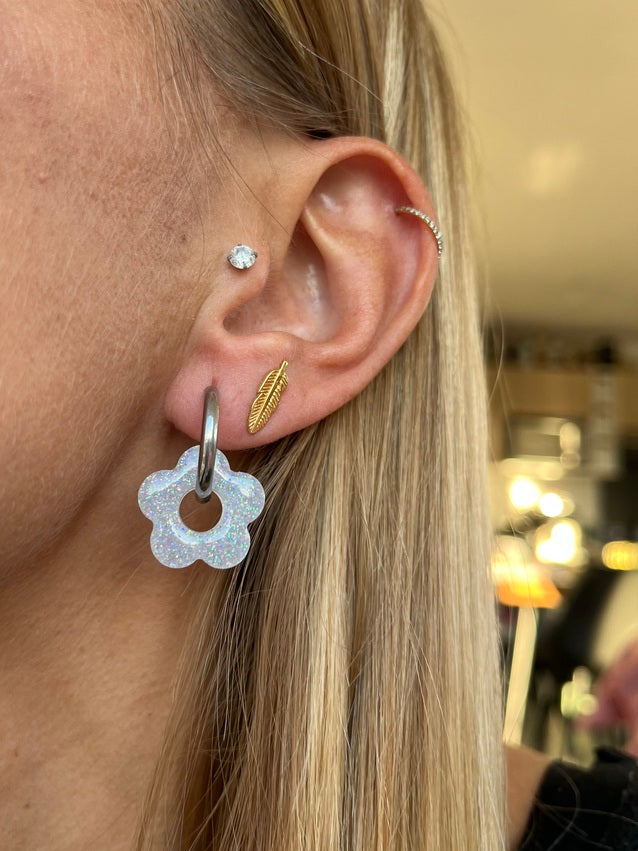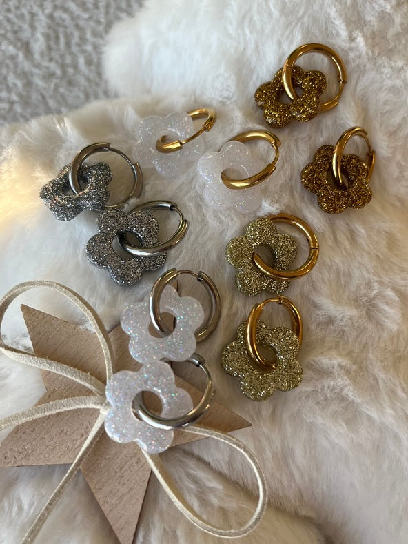 Pampilles Vinie, 20mm - 100% fait main en résine et paillettes - Pièces uniques et très légères (Créoles + pampilles 5g / Paire de pampilles 2g)