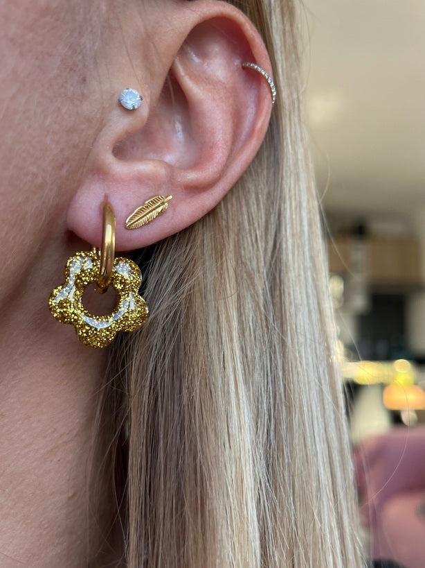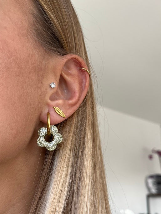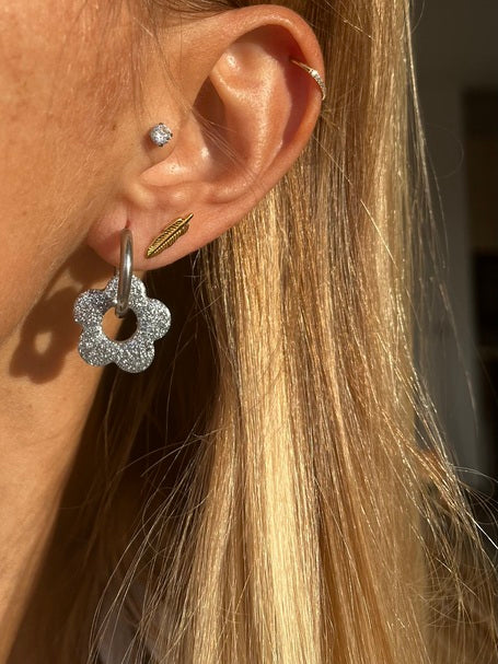 Boucles d’oreilles interchangeables; une paire de créoles et un choix infini de pampilles.